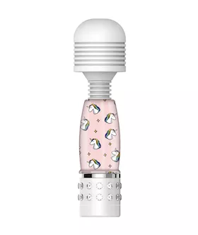 Combine pleasure and play with this cheeky mini wand from Amore! This toy features the classic wand design we all know and love, with a broad, rounded head for all-over sensation, and ridges for texture as you glide the wand head over your skin. Multiple patterns of vibration will have you twisting up the sheets, but what sets this mini wand apart is its gorgeous design! Choose from your pick of fun patterns, with complimenting rhinestones at the base for a unique jewel in your toy collection.